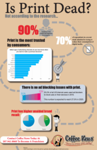 Coffee News® is an ACTIVE marketing medium, specializing in the ongoing weekly promotion of your business. This builds awareness for your company so you become known as the leader of your industry in the market and will help you develop your brand so people think of you first when they want your service or products.